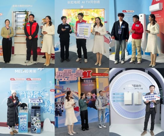 赛事期间,长虹、美菱“热雪正当虹”主题快闪展内人气爆棚。人们纷纷走进展厅,在融合滑雪元素的打卡装置前驻足拍照,在AI家电体验区感受科技魅力。线下的火热氛围为线上直播提供流量基础,形成了“线下体验聚气、线上直播引流”的传播闭环,让品牌曝光实现“立体式渗透”。